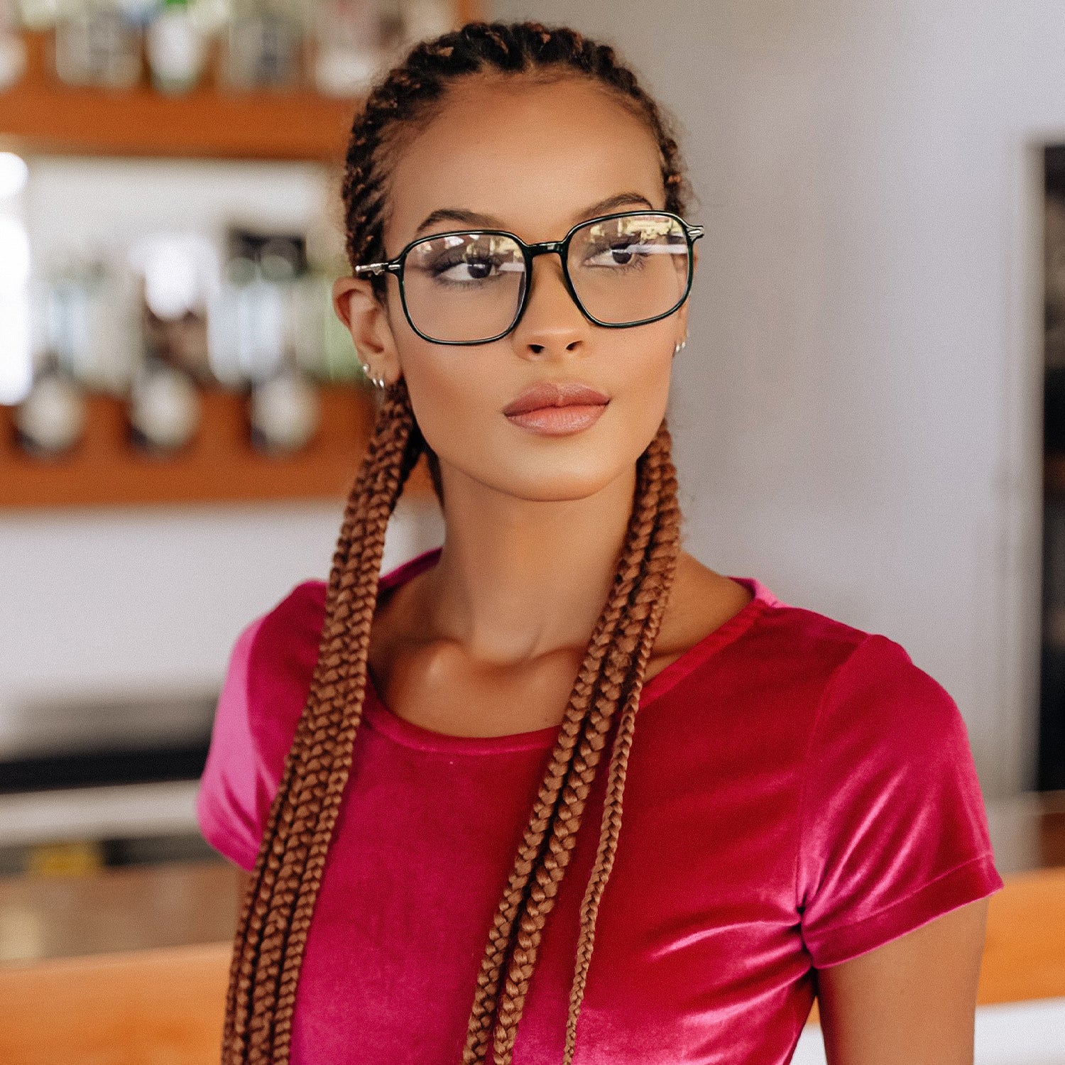 Experience the Elisa with its different colors and oversized square shape. Providing blue-light blocking protection, these sunglasses protect your eyes while giving classic style.