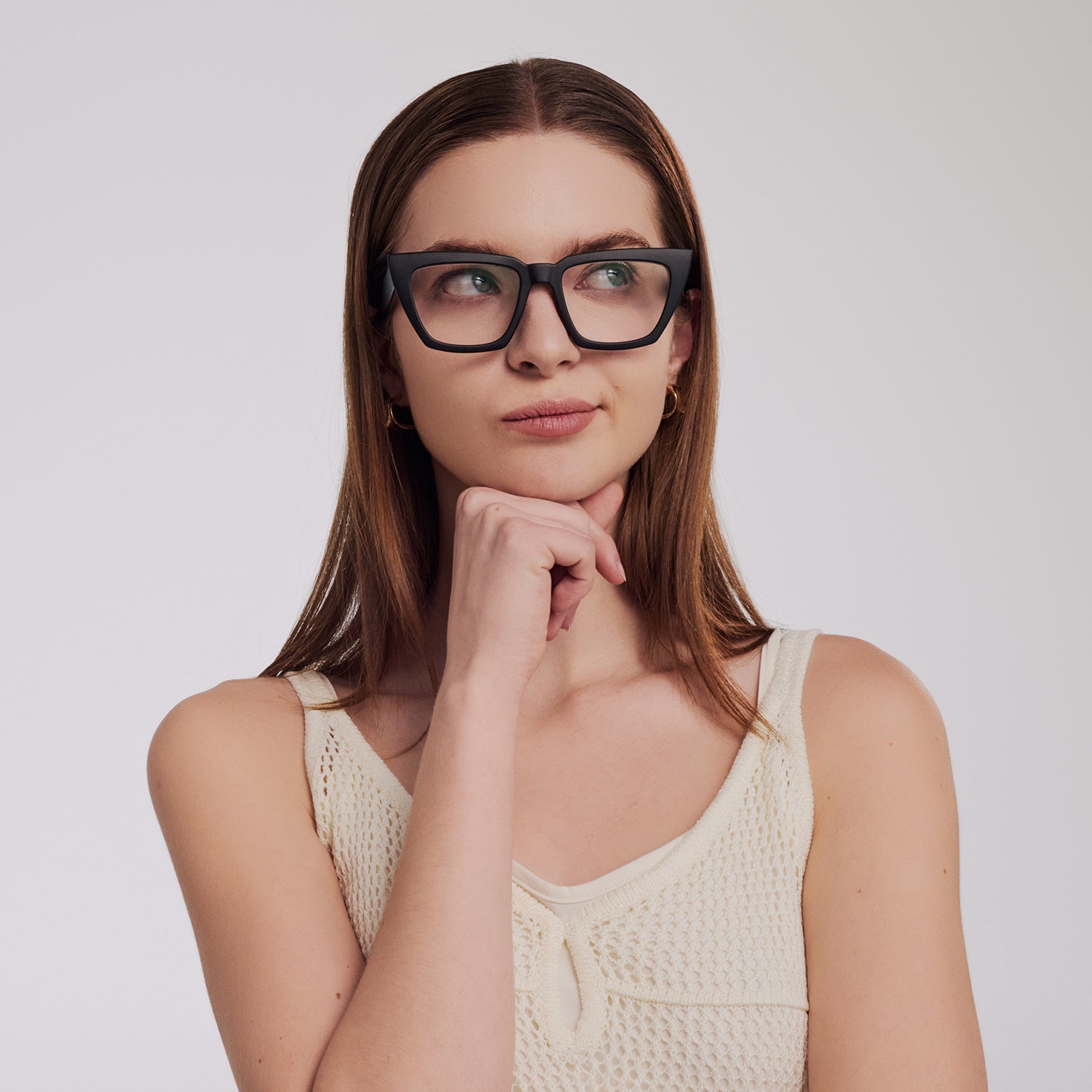 • Distinctive cat-eye frame