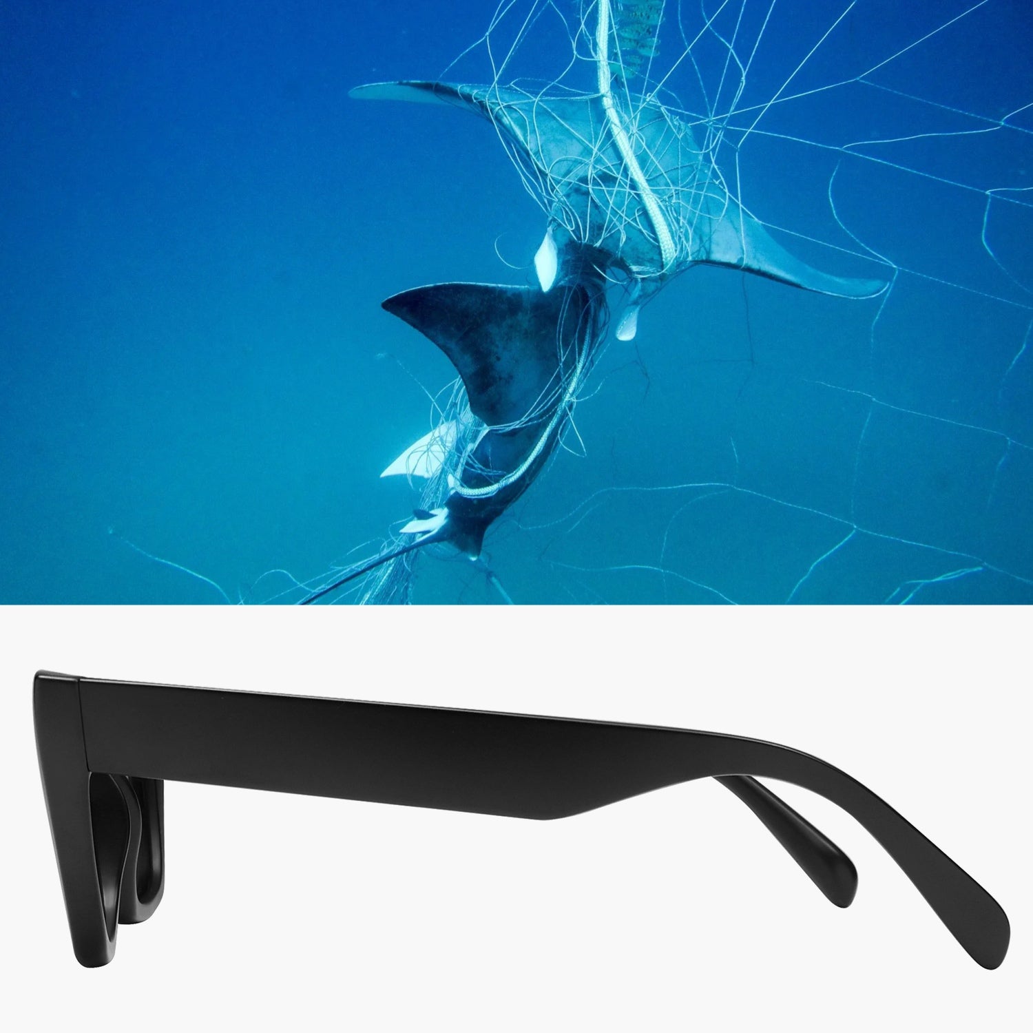 • The frame is made from recycled fishing net, effectively reducing ghost gear from the ocean