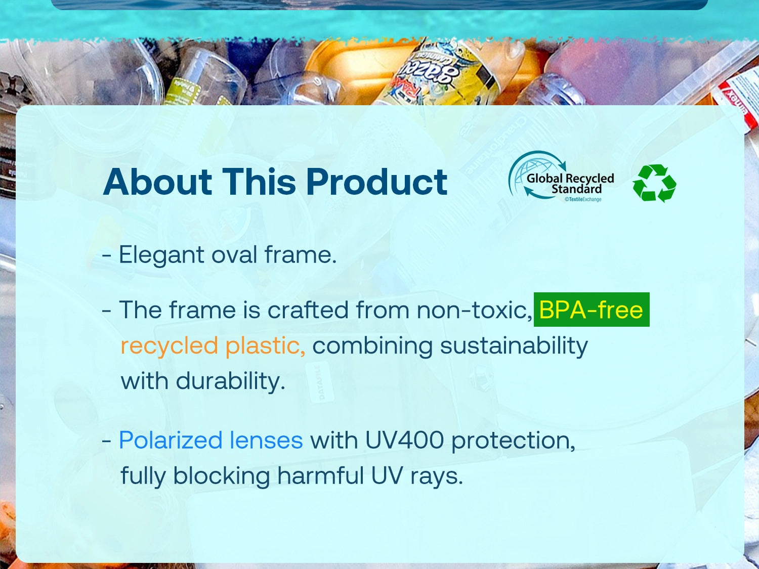 - The frame is crafted from non-toxic, BPA-free recycled plastic, combining sustainability with durability