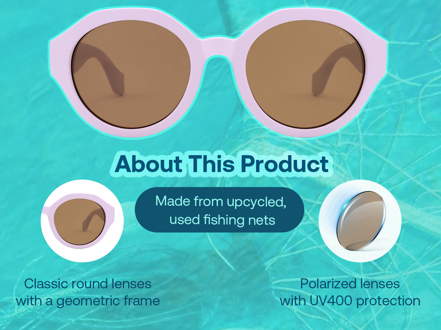- The frame is made from recycled fishing net, effectively reducing ghost gear from the ocean