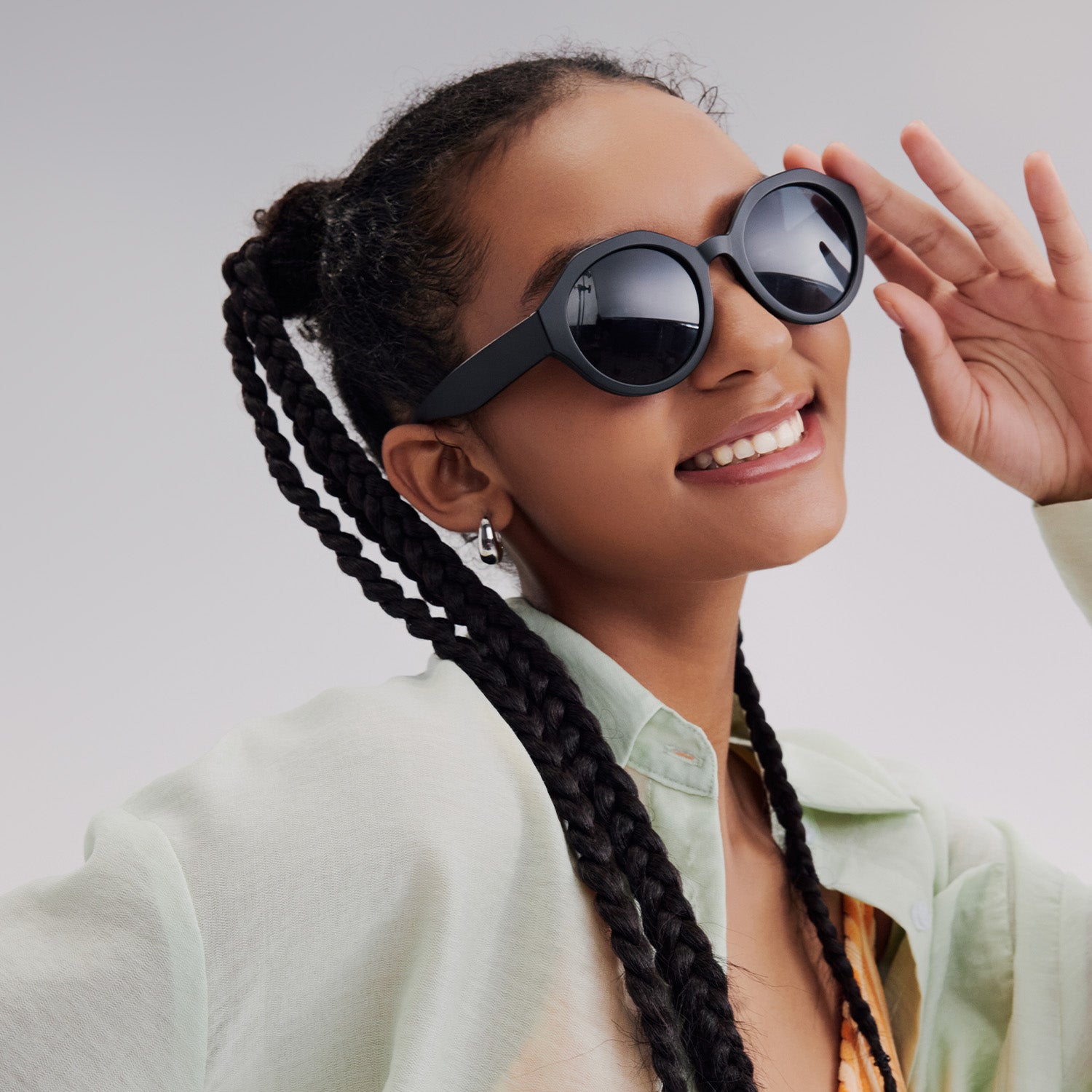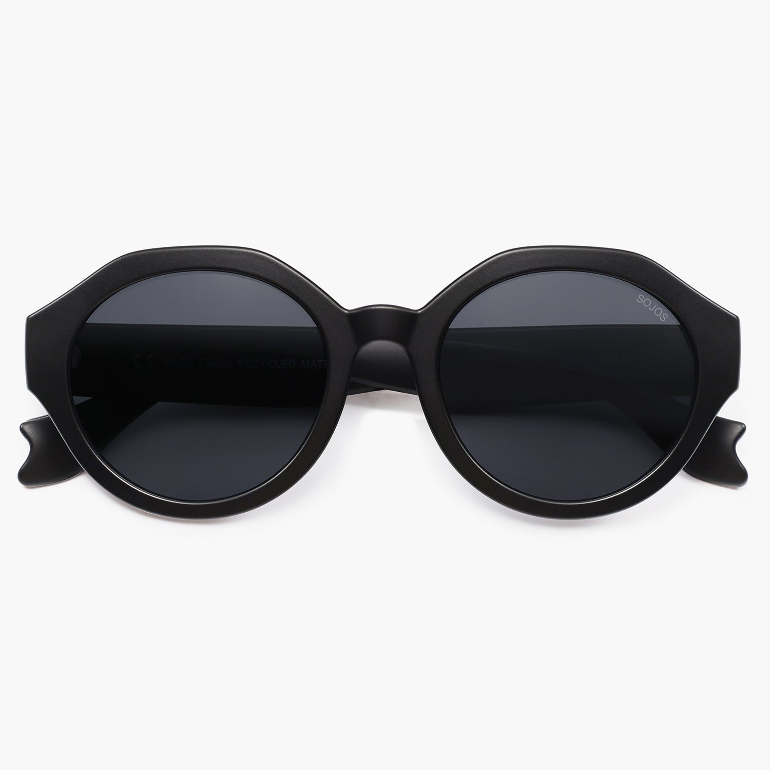 - Classic round lenses with a unique geometric frame